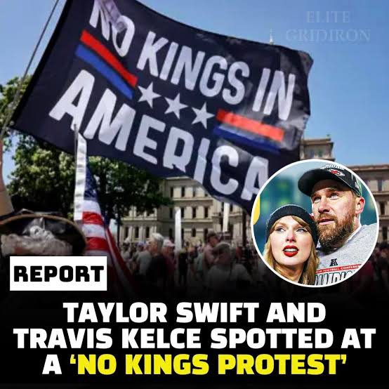 The crowd was already restless when Taylor Swift and Travis Kelce stepped into the open square, hand in hand, their presence setting off a wave of cheers that rolled through the thousands gathered for what was now being called the “No Kings” Day Protest. The air buzzed with anticipation — it wasn’t every day America’s biggest pop star and the NFL’s most talked-about player walked straight into a political firestorm. But that’s exactly what happened, and it wasn’t by accident.