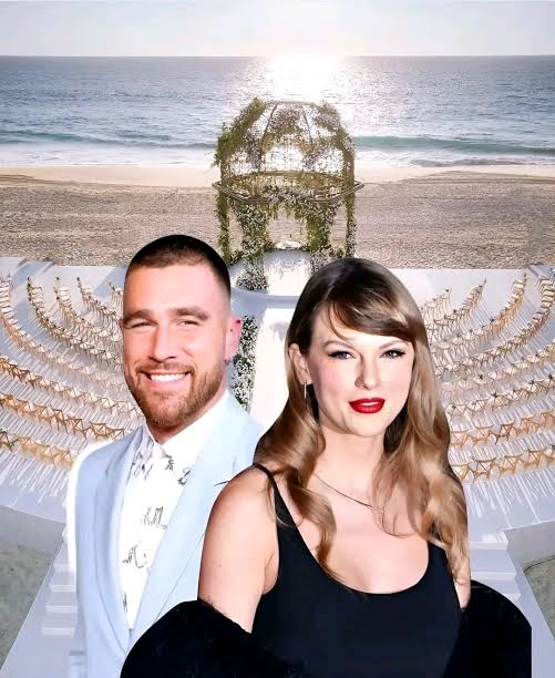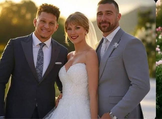 Travis Kelce weds Taylor swift at beach side while his brother Jason Kelce and his wife Kylie Kelce and Patrick Maohomes and Brittany Maohomes stand by…